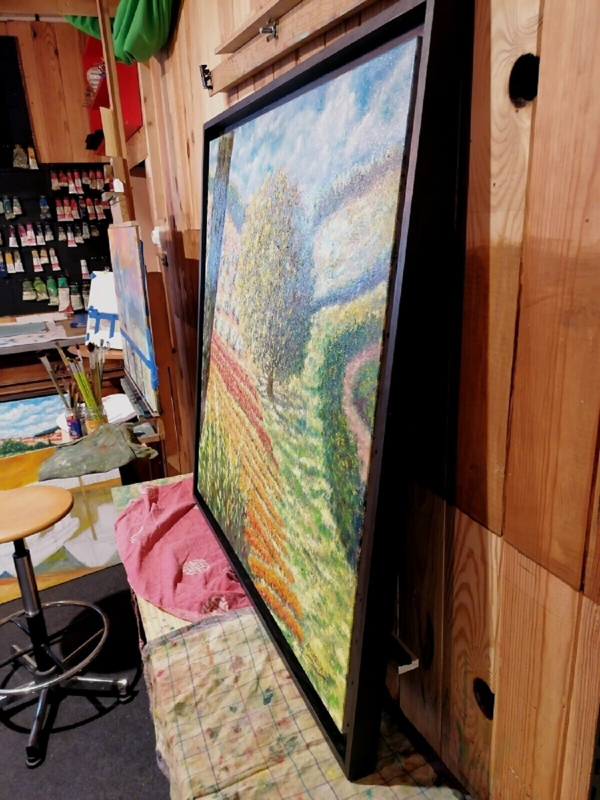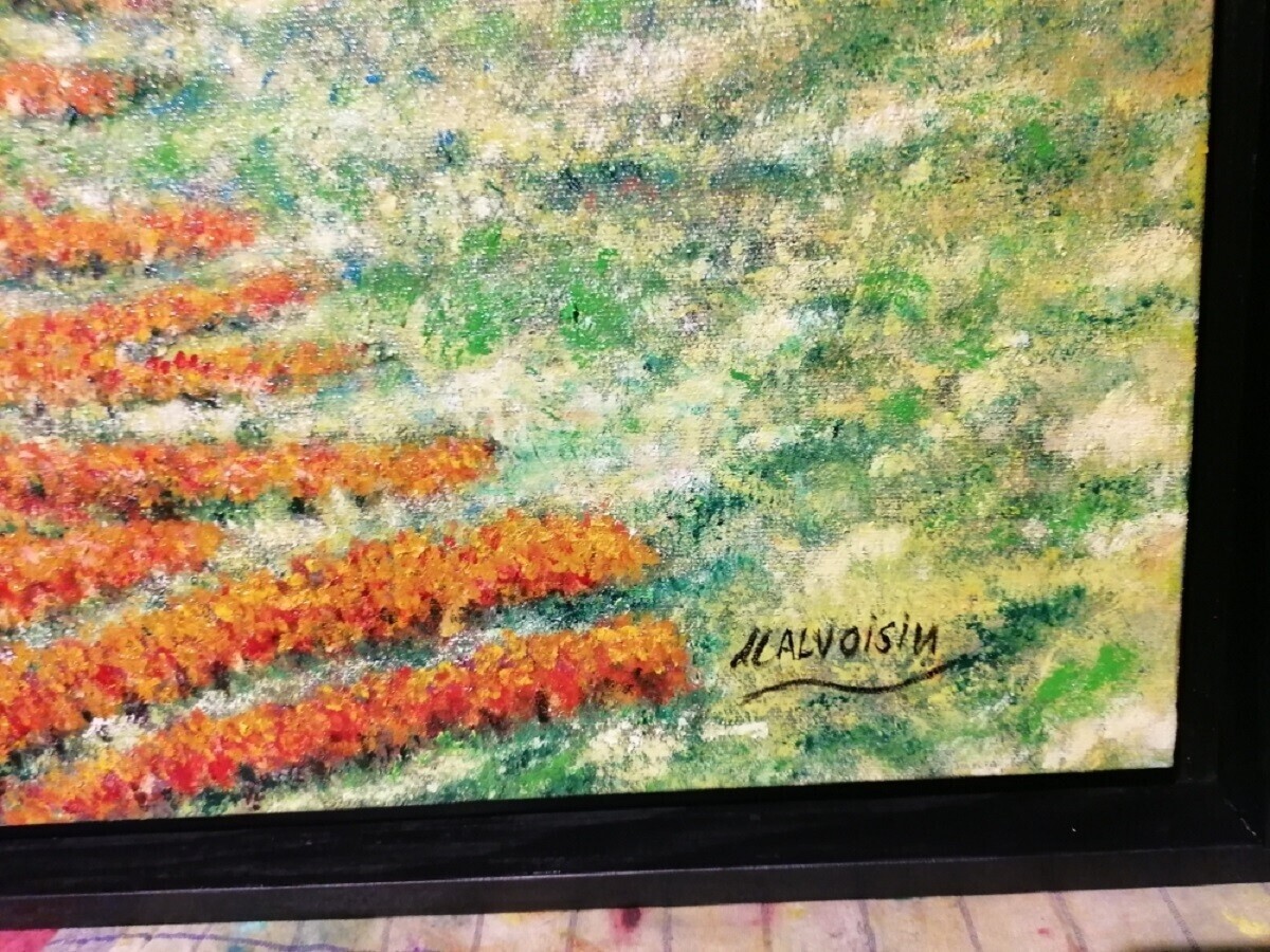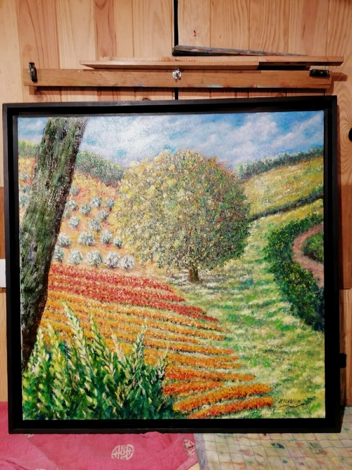 Huile sur toile . Pinceau et Couteau Fixé sur caisse américaine, fabriquée par moi-même. Pose d'un vernis à retoucher. Disponible